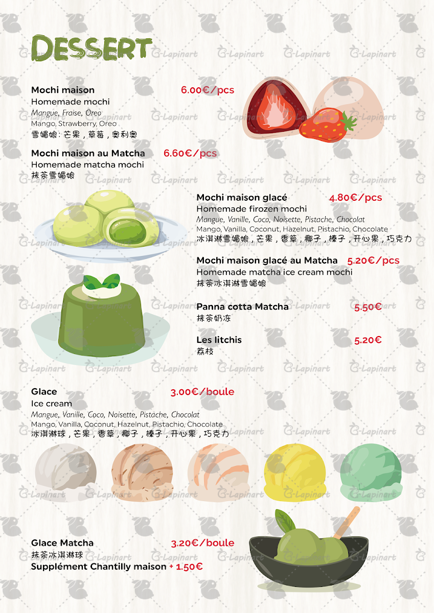 For dessert, don't miss their artisanal mochi, with flavors like mango and strawberry available for €6.00 each, promising a sweet ending to your meal. The cozy decor and warm service round out the experience, ensuring your visit to 4 Miau 四喵 is memorable.
